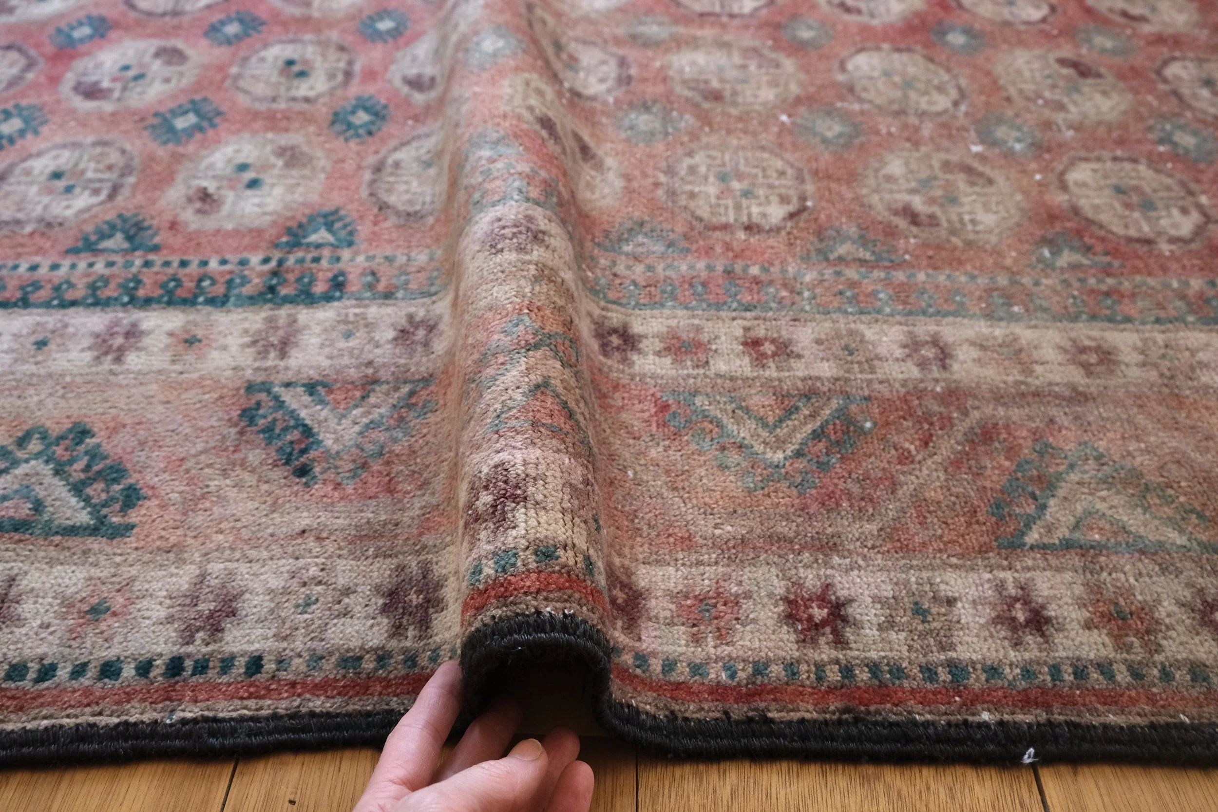 / / / gorgeous vintage Turkoman rug with repeating all-over motif and ombre fade- she’s a special beauty! I love thinking about the history of old rugs-where in the world have they been? What homes have they lived in? There is a certain romance and mystery to these hand knotted pieces of art.